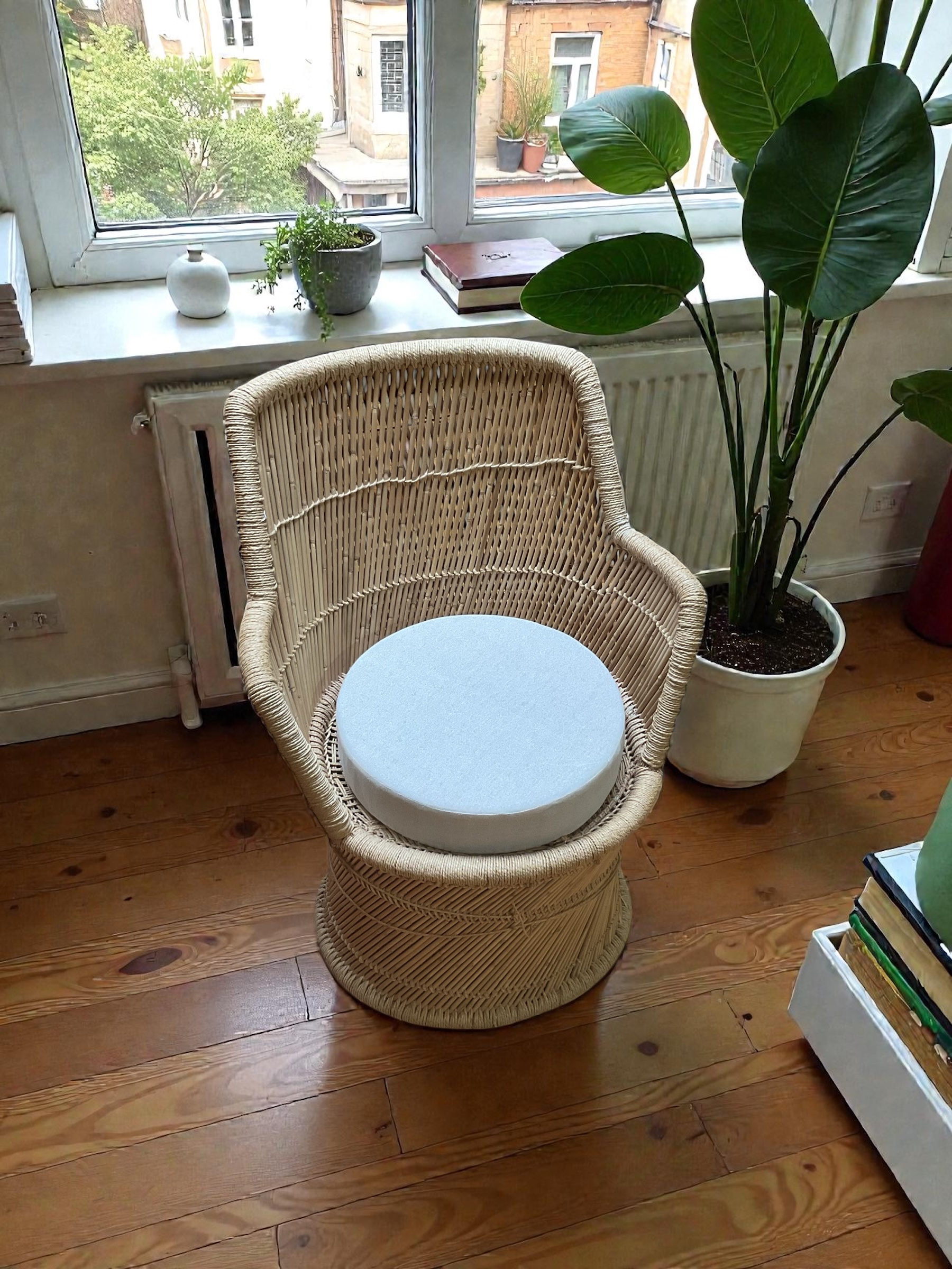 Außergewöhnlich schöner Bambus Sessel in typischem Kolonial Stil mit Sitzpolster. Geeignet für den Innen- und Aussenbereich. Der Bambus Sessel wirkt durch seine geschwungene Form wie ein Thron und lädt zum verweilen, konversieren und Tee trinken ein.