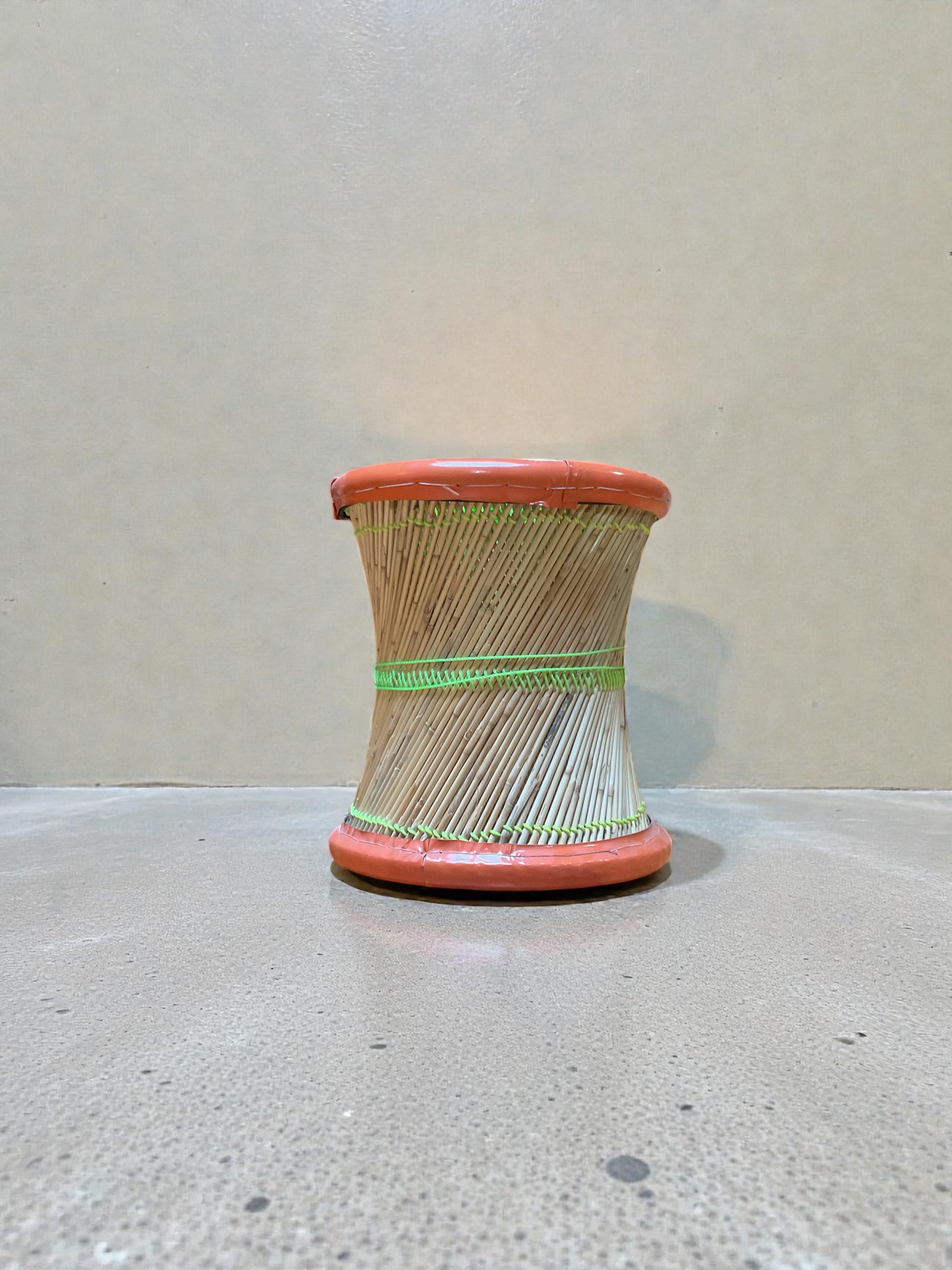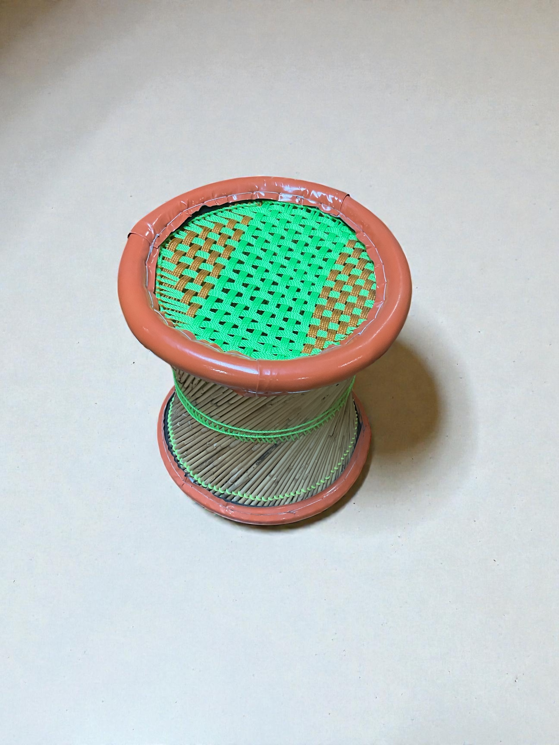 Bambus Sitzhocker aus Indien. Ein gespanntes Netz dient als Sitzfläche. Die Hocker sind sehr gut und robust verarbeitet und sehr bequem.