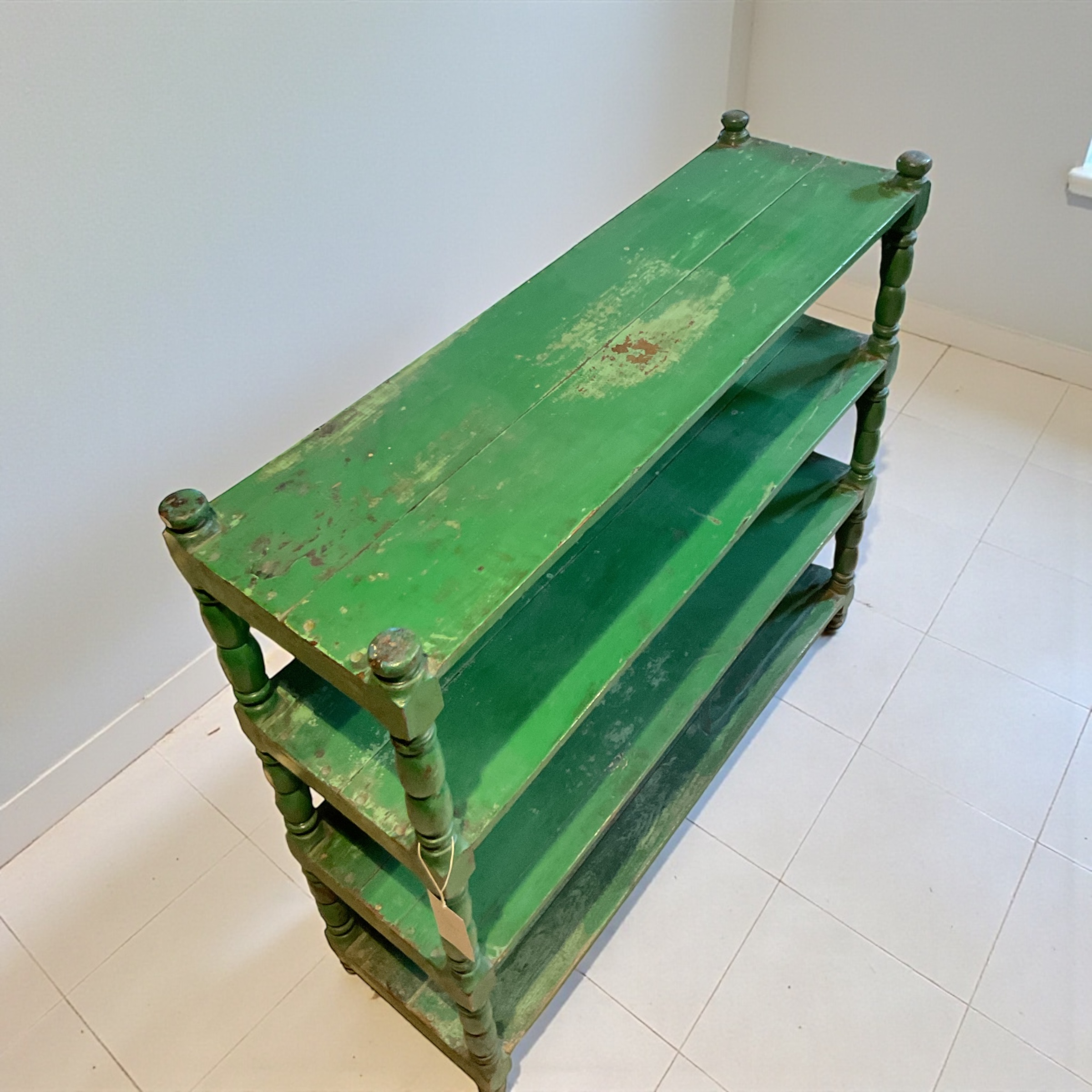 Dieses wunderschöne, handgefertigte Holzregal aus Indien bringt nicht nur rustikales Flair in Ihr Zuhause, sondern auch funktionale Eleganz. Das Regal besteht aus hochwertigem, dunkelgrünem Holz und bietet mit seinen vier Fächern ausreichend Stauraum für Bücher, Dekoration oder persönliche Gegenstände. Die tiefgrüne Farbe verleiht dem Regal einen warmen, natürlichen Charme, der sowohl in modernen als auch traditionellen Einrichtungen wunderbar zur Geltung kommt. Jedes Regalstück ist einzigartig und spiegelt die kunstvolle Handwerkskunst aus Indien wider – ideal, um Ihrem Raum eine besondere Note zu verleihen.