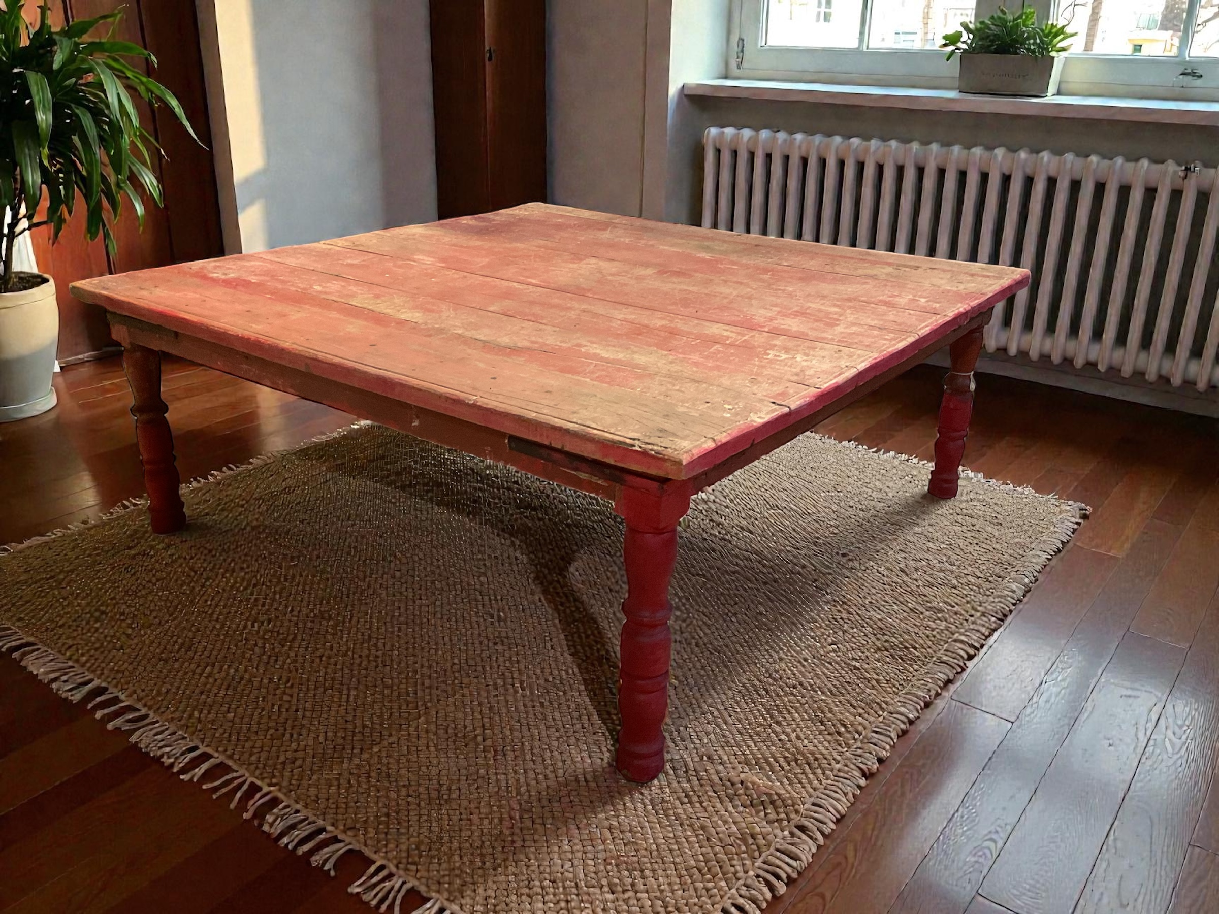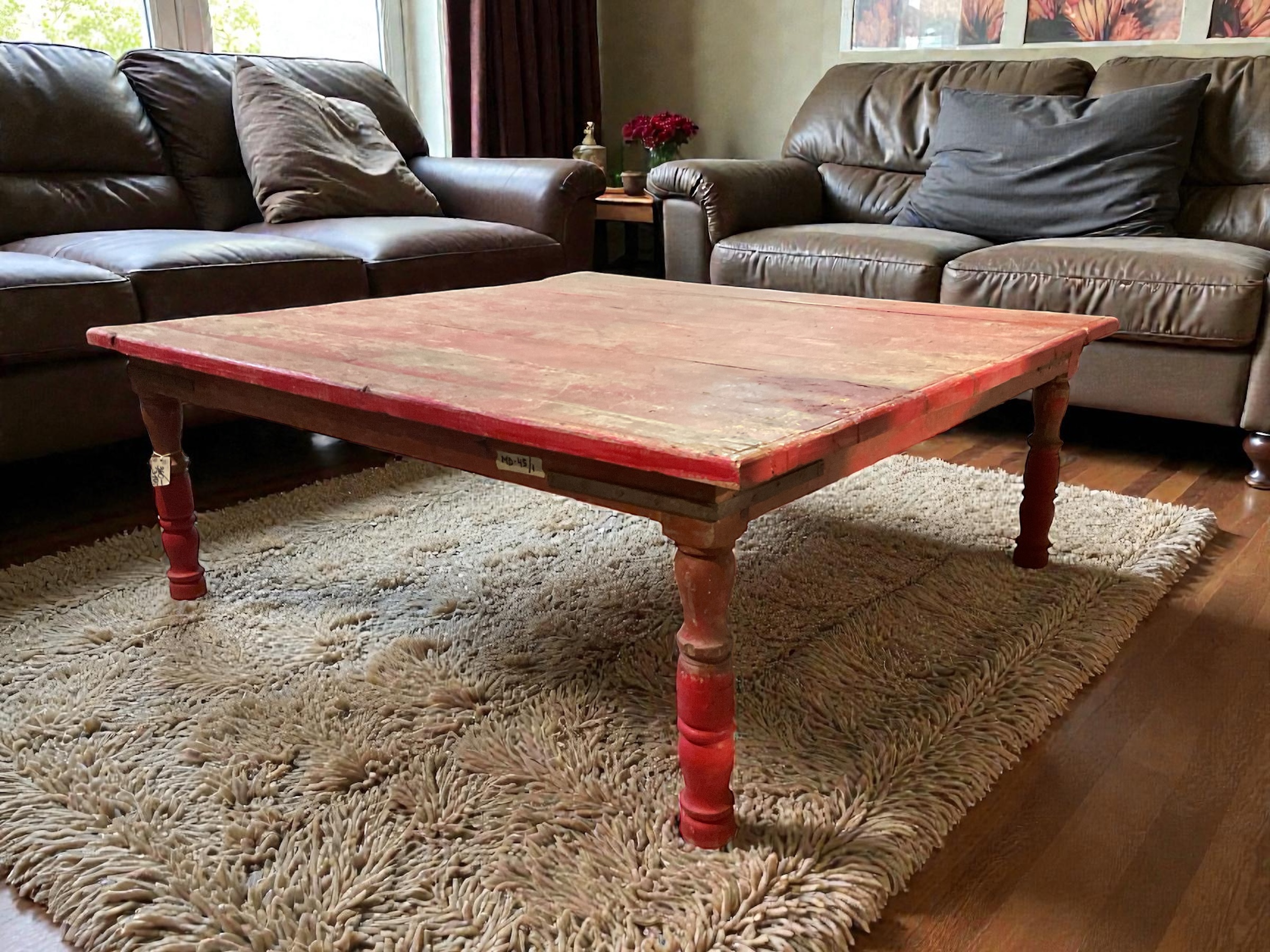 Roter Indischer Shabby Chic Tisch – Quadratisch, Vintage, 49 cm hoch – Ideal als Couchtisch